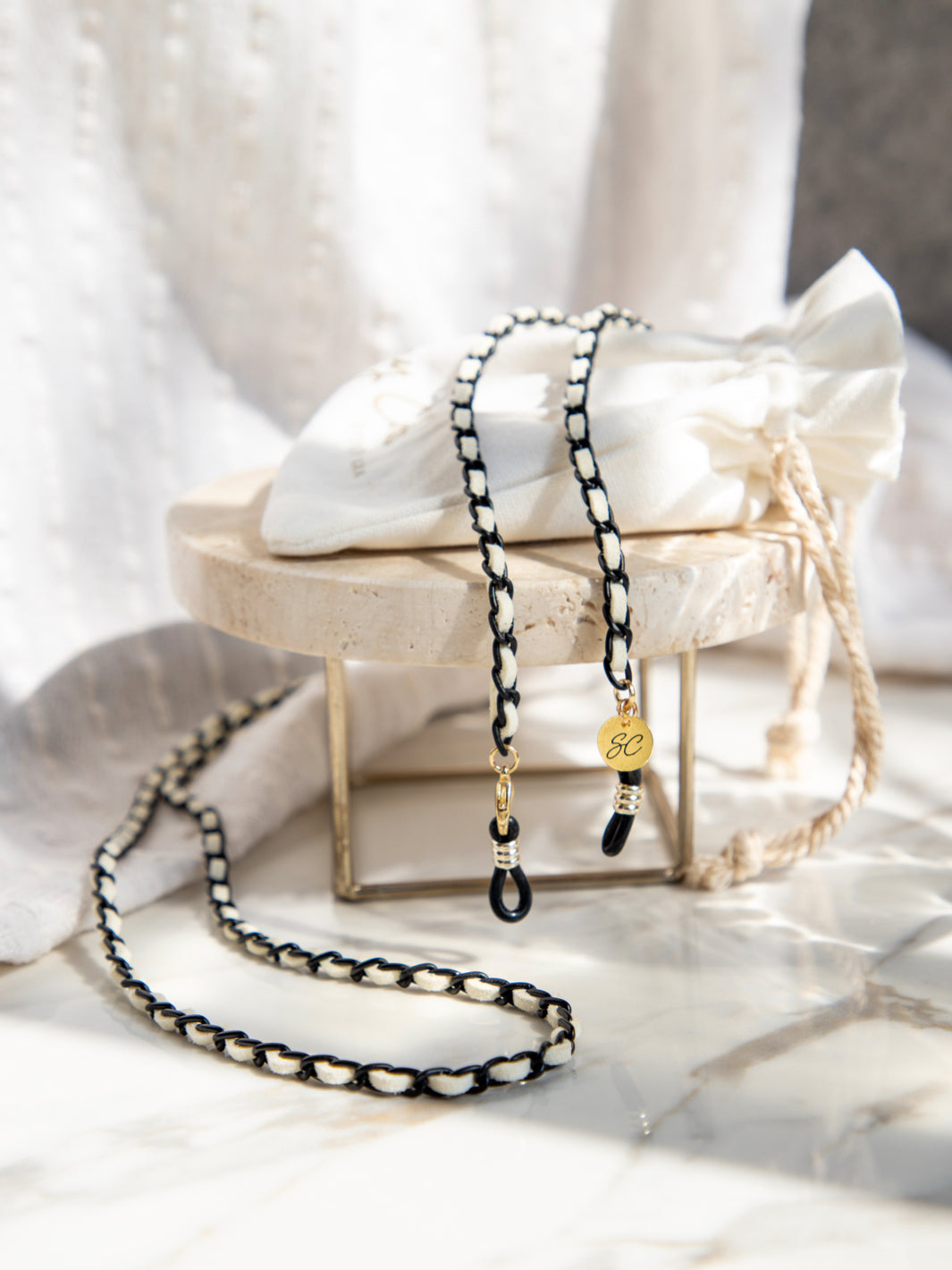 This white sunglasses chain is a timeless statement piece. No matter what you are wearing, the Classy-C, in classic black and white, is sure to give your look that sophisticated, effortless finish. We think Coco would approve this trendy sunny white chain! Good news because more variants are available. Click here