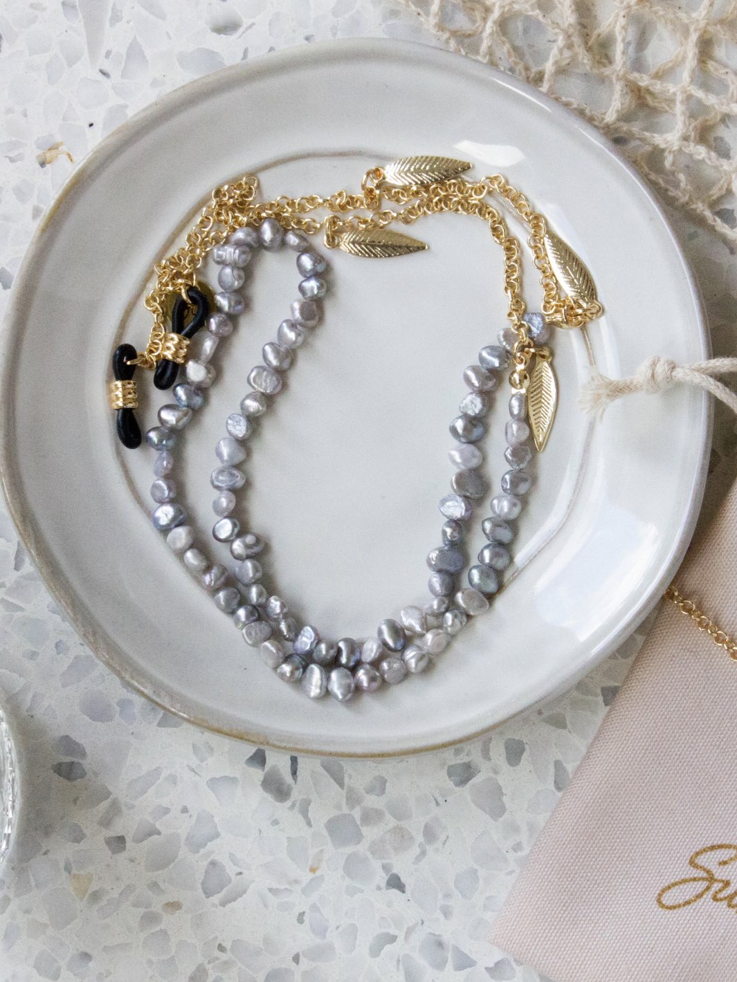 This eye-catching sunglass chain is crafted with the finest collection of pearls. Whether white or grey pearls is the color of your liking, the Pearl Grey will “bead out” any fashion accessory dilemmas.