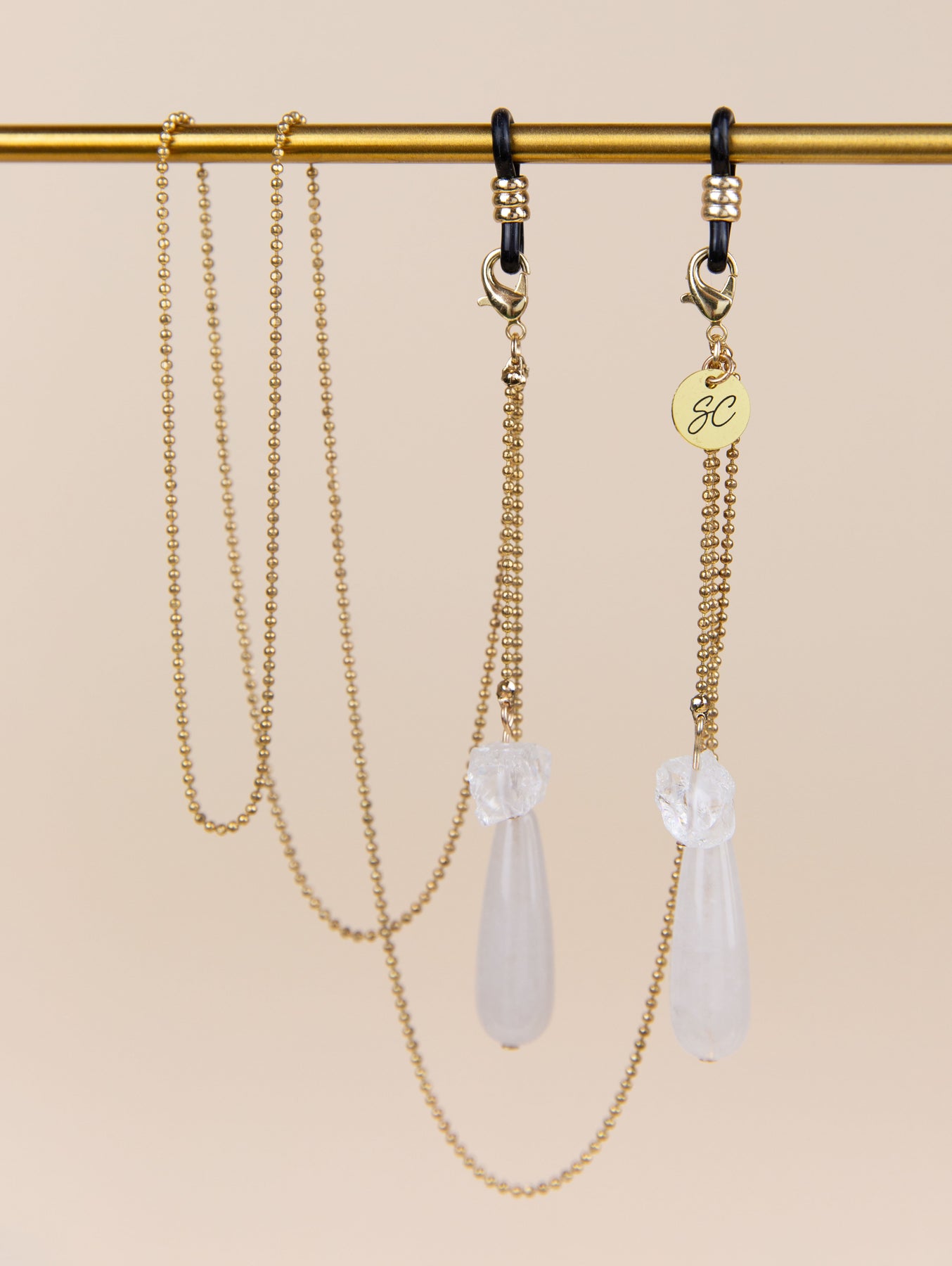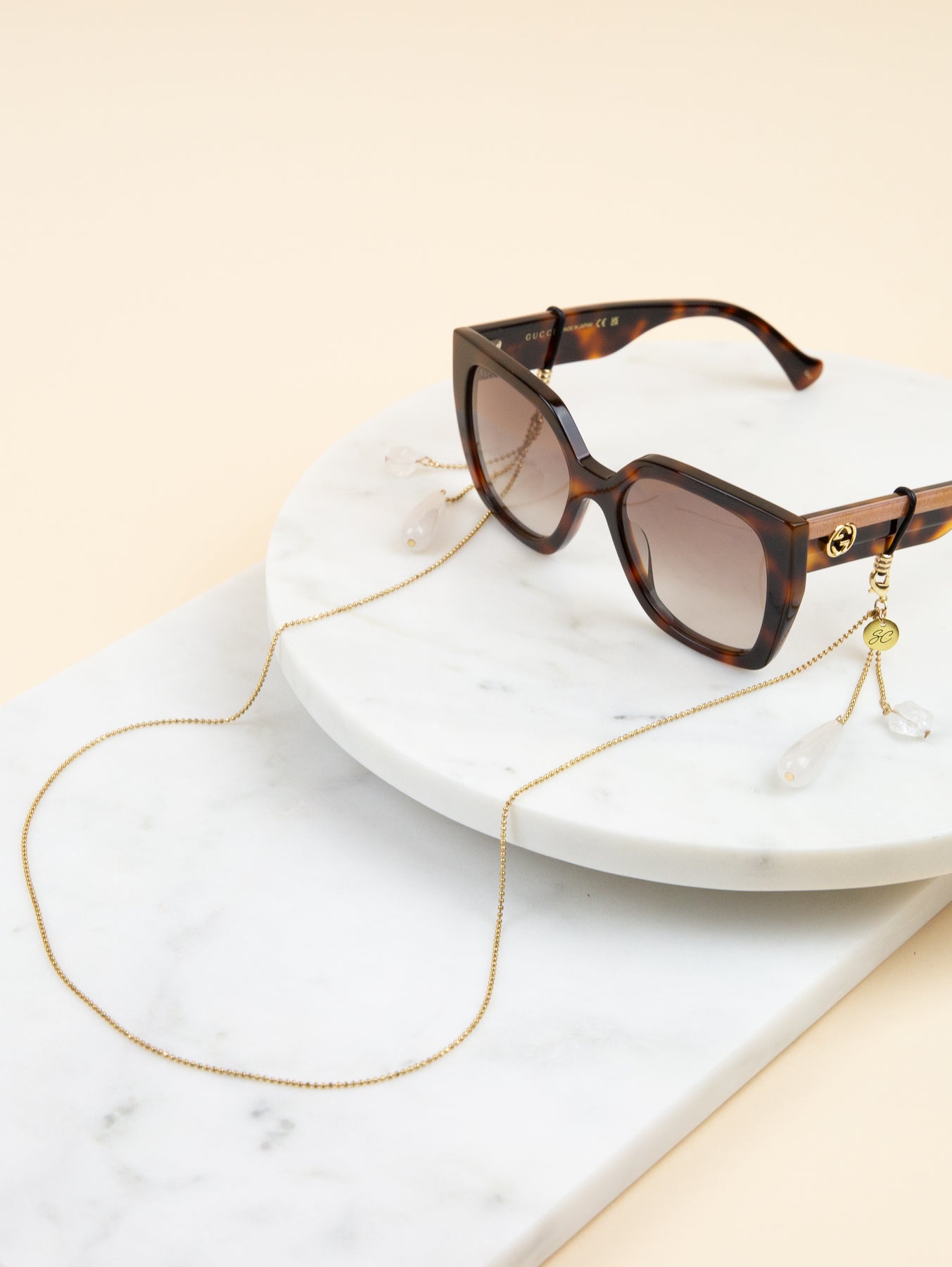 The Gigi Sunny Cord was inspired by you! A beloved customer was seeking a glasses strap that resembles wearing earrings, and Gigi meets all those expectations. The 2 crystal white stones give a timeless look. Simply attach the Sunny Cord to your glasses, and you're ready for a stylish jewelry look.