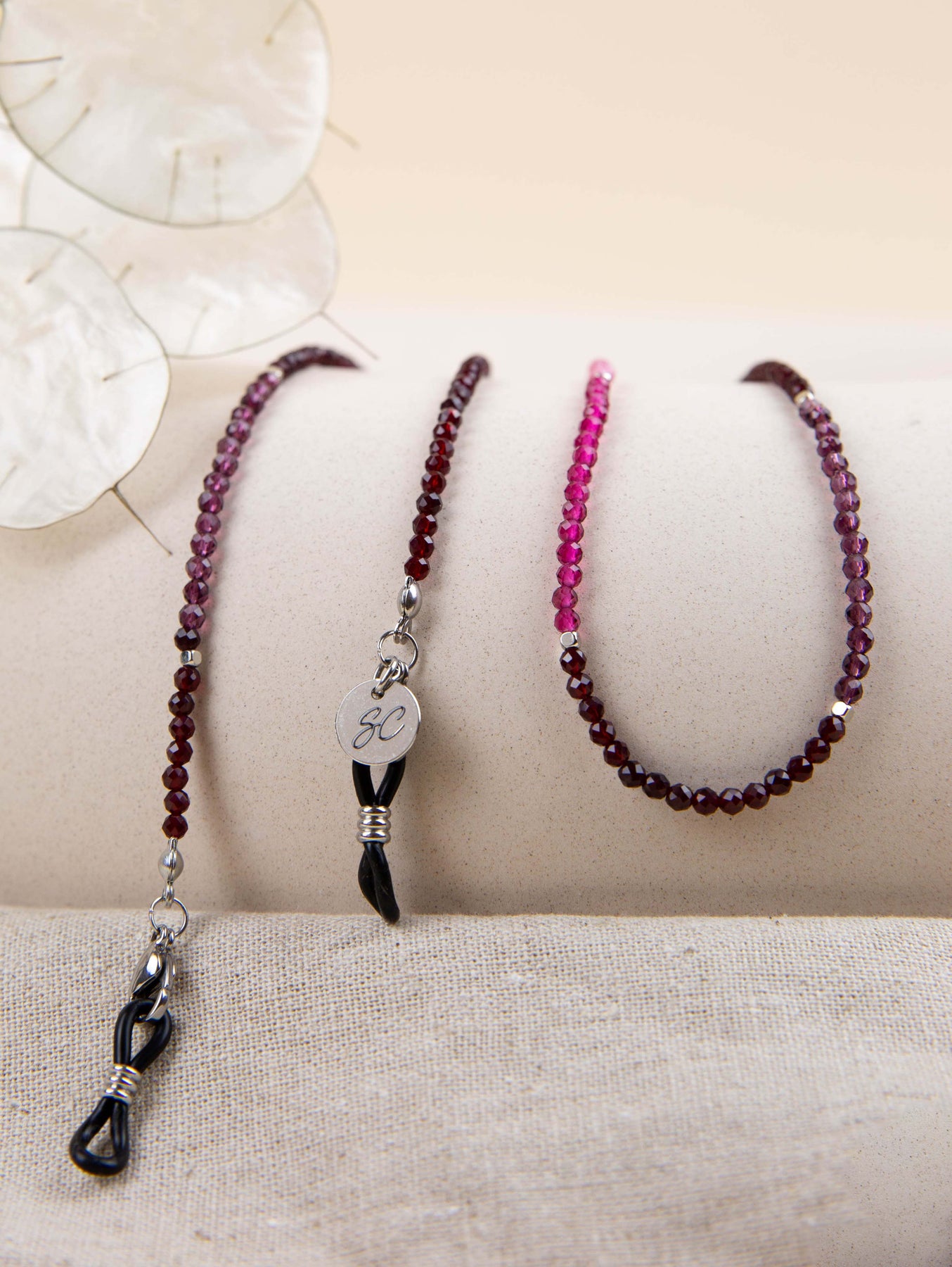 This Imani sunglass chain treasure is inspired by the Arabic cultures. The various shades of purple in the Sunny Cord will bring a warm, sparkling touch to your outfit. Whether you wear it on your glasses or as a bracelet. Imagine wearing this chain while watching the sky turn pink at sunset—it's truly exhilarating just to think about!