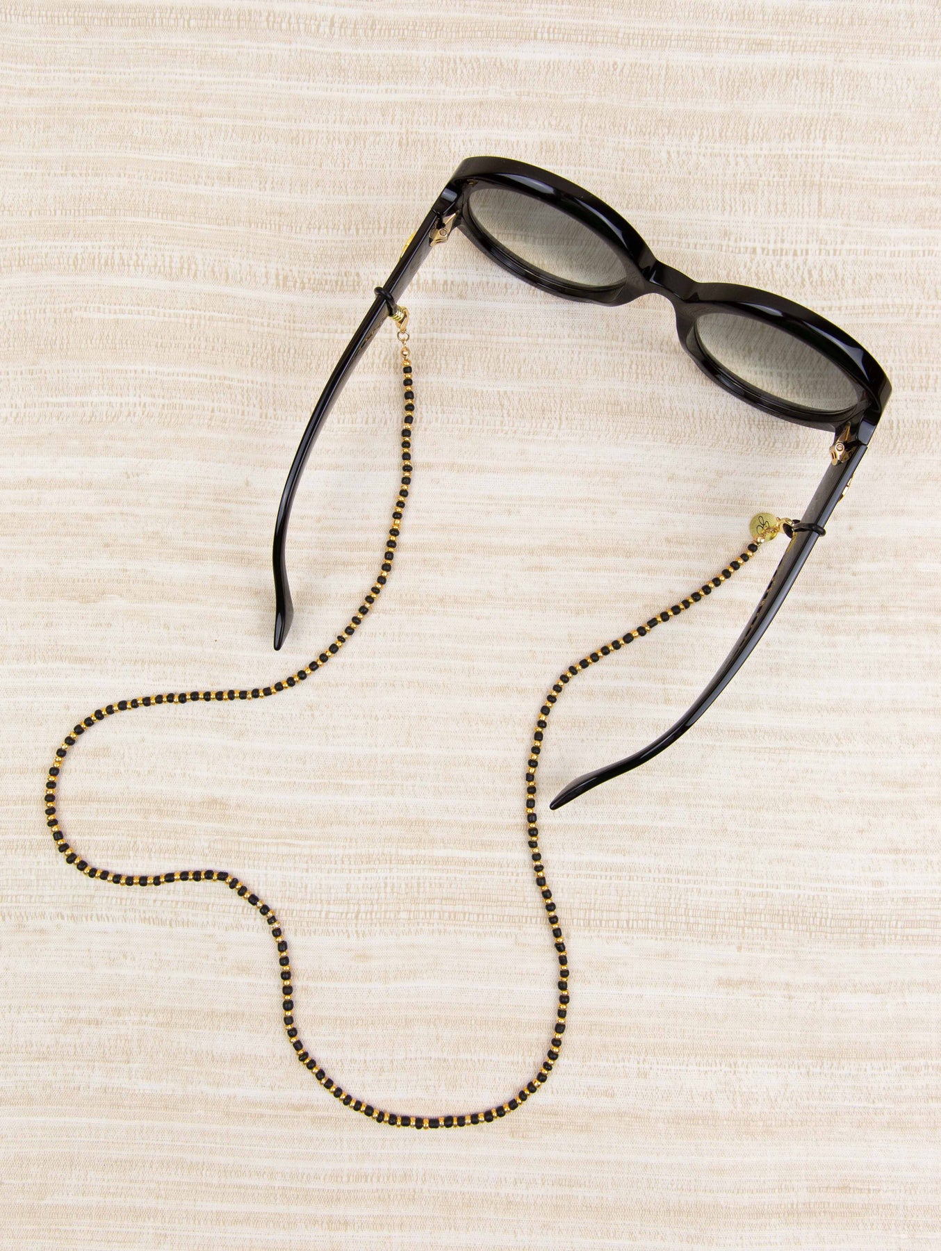 Elevate your look with the Lou Black Sunny Cord, designed to keep your sunnies close in style. The round beads and subtle golden details add a refined touch that blends simplicity with elegance. look to your outfit. Good things come in two, don’t forget to check out the purple color. The Sunny Cord can be worn not only as a sunglass chain but also as a bracelet or necklace.