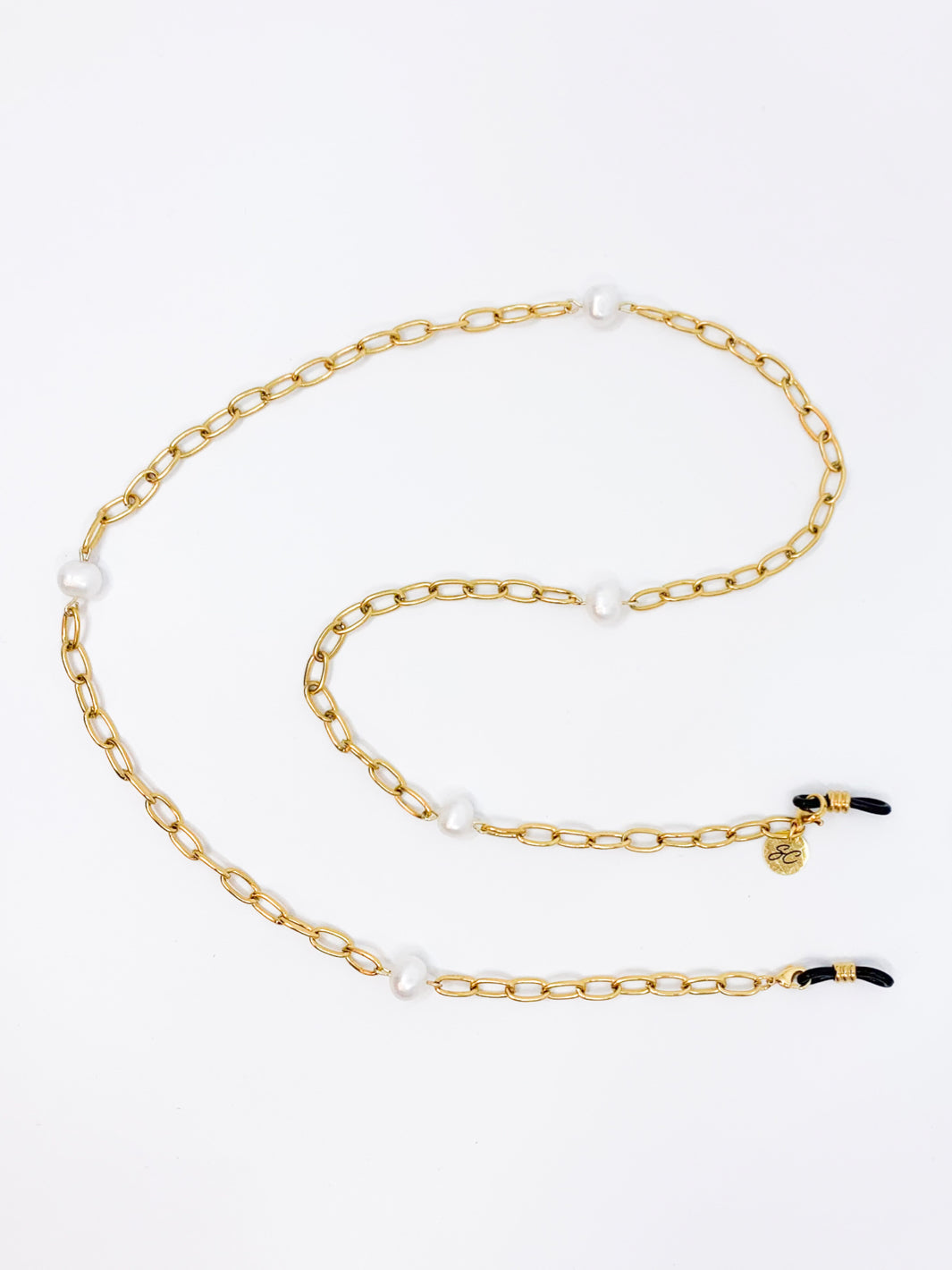 Always on the go? With this pearly cord, you won't lose your glasses during a busy day. This golden chain with classy pearls from ourSunny Cords x Lizzy van der Ligt line is a real eye-catcher. Whether you wear it with your daily work-look or a breezy summer dress, Busy Babe is always a good match.