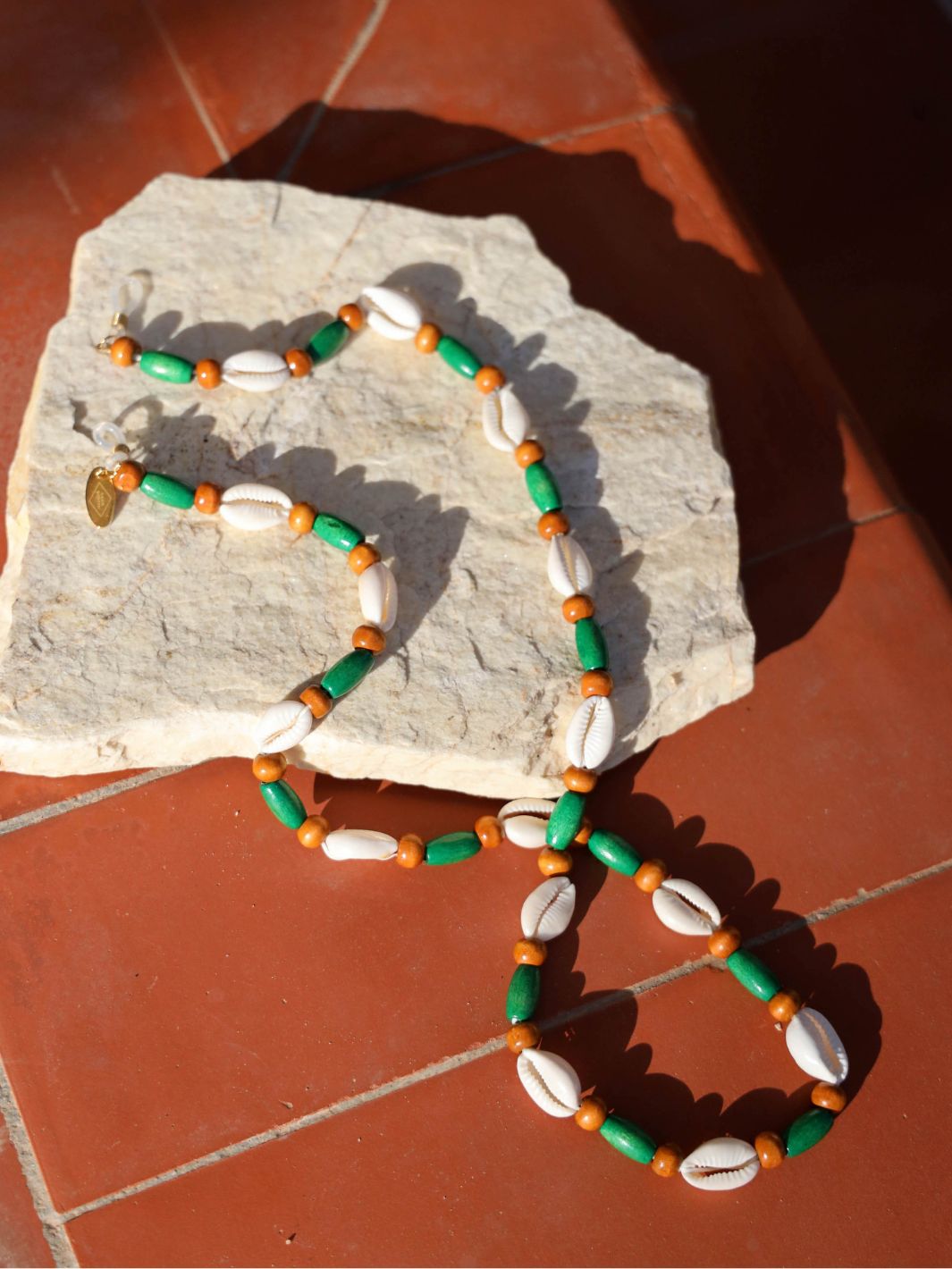 Inspired by the traditional African handicrafts, this Sunnycord is giving you exotic vibes! It’s the perfect travel accessory for a tropical holiday destination. We absolutely love the color palette in combination with the cowrie shells.
