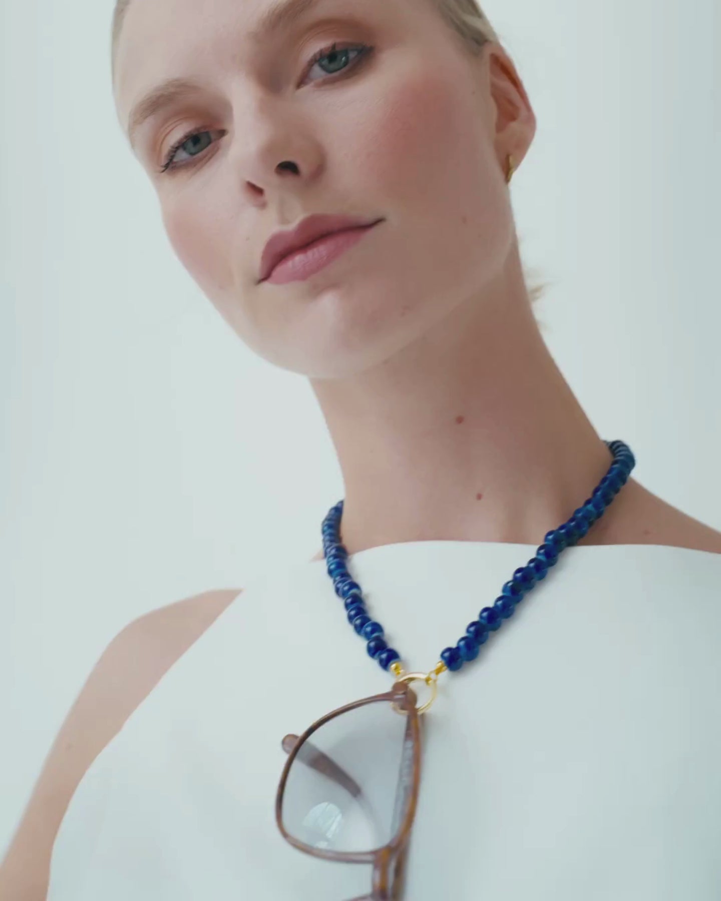 The Ceramico Azul Eyewear Necklace is where elegance meets everyday function. Crafted with deep blue ceramic beads and a gold-plated stainless-steel ring, it’s designed to hold your glasses in style. The 18 mm ring fits almost all eyewear legs, making it both practical and chic. Available in 45 cm for a close fit.
