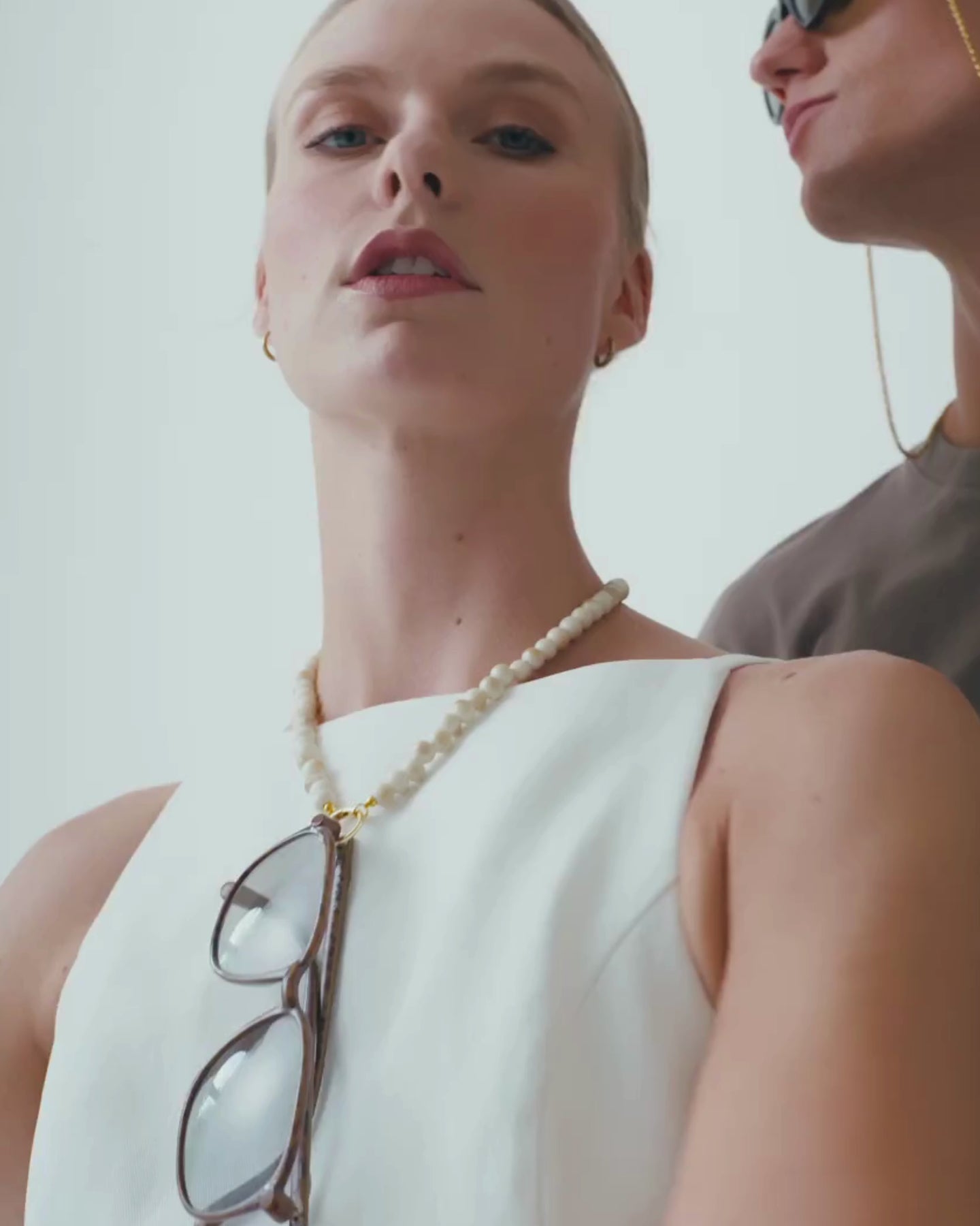 The Ceramico Blanco Eyewear Necklace blends subtle tones with timeless sophistication. Handcrafted with white ceramic beads and finished with a gold-plated ring, it’s an elegant statement that doubles as a smart eyewear holder. The 18 mm ring easily fits most eyewear legs for effortless daily wear.