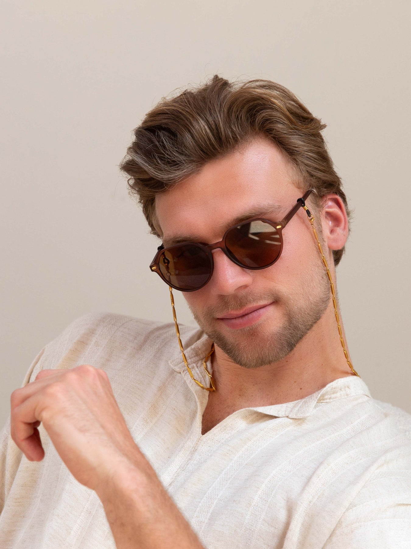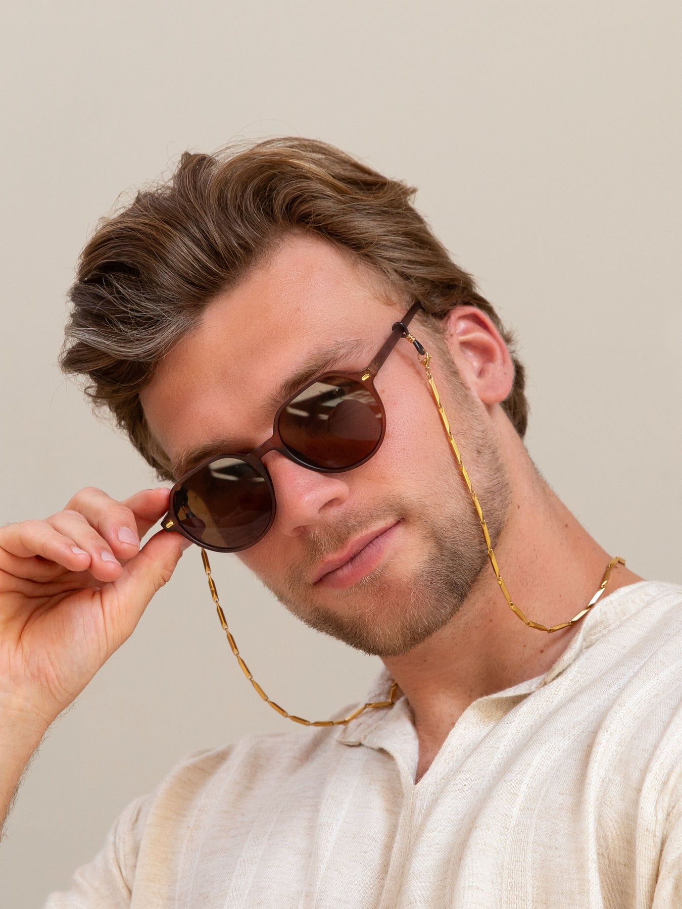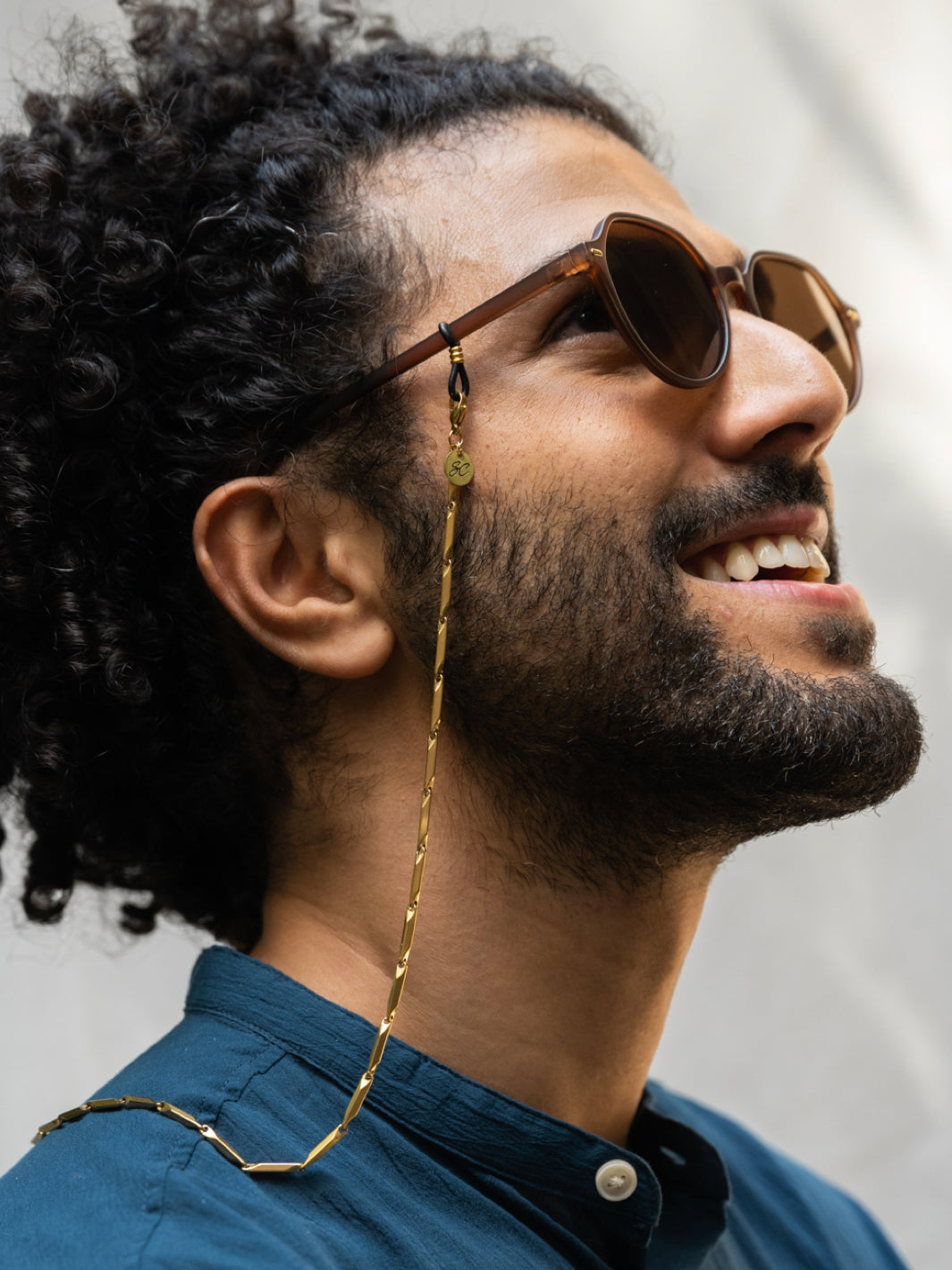 Let us introduce you to Jake, our cool and fashionable glass chain. The Sunny Cord can be fixed easily to your glasses by using the rubbers that are placed at the end of the chain. It will keep your glasses in place, so that you will never have to search for your glasses again. The Jake has metallic squared shapes with sightly rounded edges to add some finesse. The Jake is available in pitch black or gold. Which one will you choose?