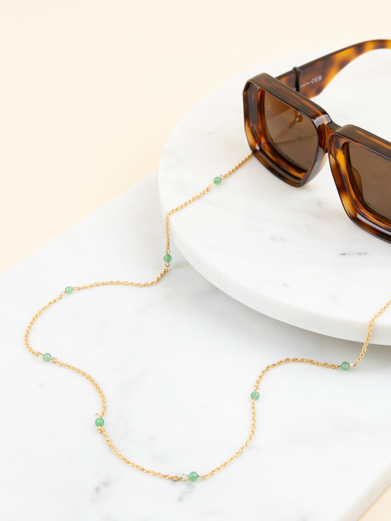 Embrace your active lifestyle with the Sunny Cord chain Tess, perfect for keeping up with your daily hustle and bustle. The three colour variants of green, beige or tiger eye of this glasses chain pairs well with any outfit, making it a must-have accessory in your collection. This accessory is built to last, ensuring you will enjoy it for years to come. Can be worn not only as a sunglass chain but also as a bracelet or necklace.